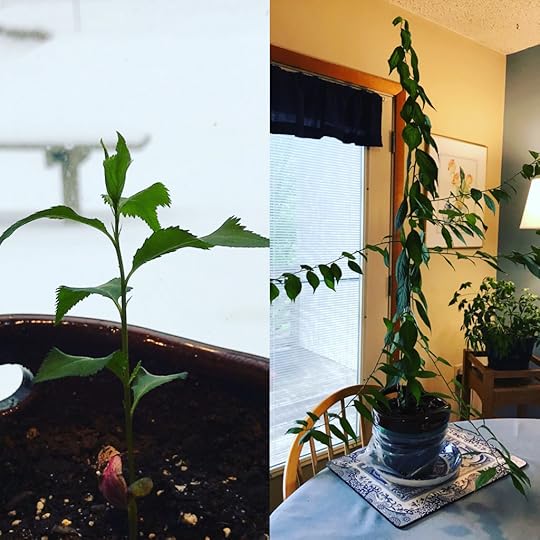 The Plumcot will go to its home in the garden in the next week or so! It’s a persistent plant. It began to grow in the refrigerator where I had thrown the seed from a Plumcot pit because of the chilling requirement.