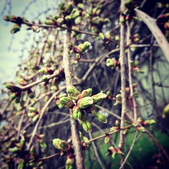 In a time of so much uncertainty, I take more delight in certain things. I note how the Weeping Cherry will bloom on schedule. I see the evidence against a stormy sky. Tomorrow, we may see those fleeting blossoms, certain in their transience.