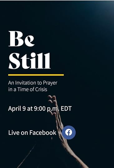 This Thursday, I invite you to join a Facebook Live event (April 9 at 9:00 PM EST). The event is called “Be Still: An Invitation to Prayer in a Time of Crisis”. You can read more here.