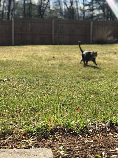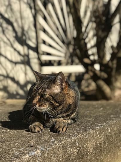 Sometimes we let Louie outside to smells the smells and see the sights. He loves sitting on the warm pavement to bask in the sun.