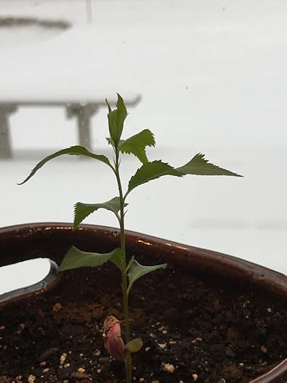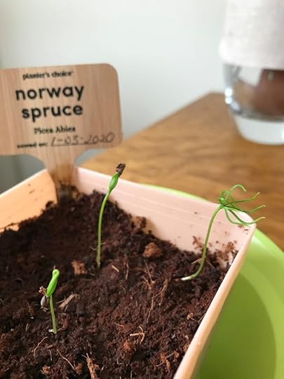 I’m thrilled to report that the Norway Spruce bonsai seeds have sprouted (our second attempt to grow bonsai). We watch how they grow and unfold every morning now. They start as little Chinese lanterns that then splay out and reach for the sun.