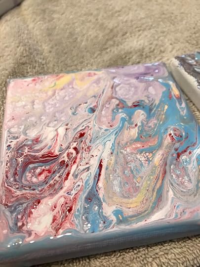 I’ve been seeing beautiful photos and videos of “Pour Paintings,” and as I was cleaning out a closet today, I found tiny canvases. I remembered all the acrylic paints we still have in our craft bin, and then I remembered how much I loved making coasters for our coffee mugs. And then I remembered Pour Painting!