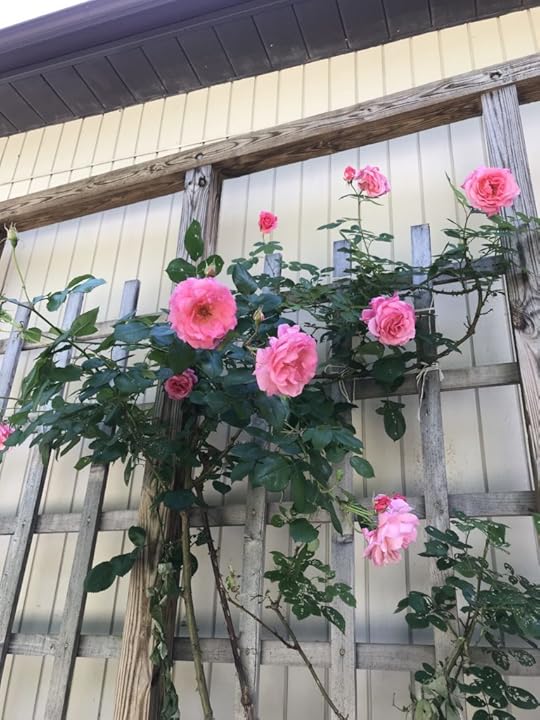 The climbing roses smell particularly sweet this year. I stop and smell every morning and every afternoon. I pick some for the neighbors. When I hold the bouquet in my hand, I smell the beautiful roses and smile that I live in a world where little pink roses climb up a trellis.