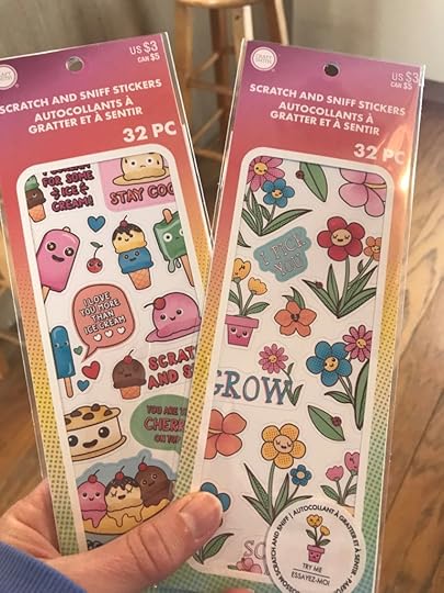 When I found these in Michaels, I experiences nostalgia for my 1985 sticker collection. My favorite pages in my album were the Scratch and Sniff stickers. And now they’re back!