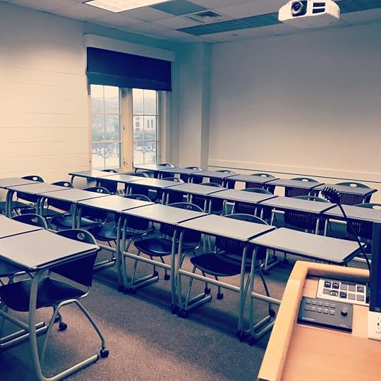 I enter into the dark, empty classroom to enact the twenty year old ritual of praying in that sacred space before the students arrive.