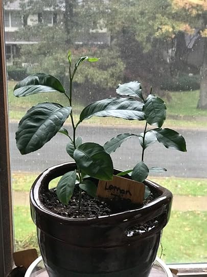 As you know, I love watching things grow from seed. On this rainy and cold Saturday morning, I see the Lemon Tree growing, and it brings a bit of spring sunshine into the room. Those little leaves that stretch upward to the light remind me that, even in the brittle autumn season, I shall still stretch and grow.