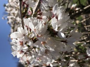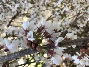 I observe the morning breeze stir the cherry blossoms and scatter them to the ground. It’s a beautiful shower of white and pink. I know what it means: the fleeting blooms fall. We’ve lost them, but I note the beauty in even the manner of their falling–like dancers lilting and twirling. Now, the greenery will fill the tree, and robins or sparrows will come nest here. It’s a good thing lost for greater things coming: bright eggs and new life flying.