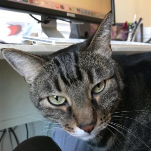 You write no matter what. No matter where. You write even with a cat on your lap who swats at your fingers as you move them, like your writing life is his personal little game.