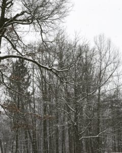 But then I remember to notice the beautiful winter branches, the dark soil beneath me, and the smell of winter all around me. I see the sky above and feel the suddenly unusually warm wind at my fingertips. I listen to the neighbors walking their dogs. One by one, I take down the snowflakes and icicles. One by one, one by one. It’s peaceful and ordinary and just what I’m doing now, right now. Nothing else matters but this one wire on this one snowflake.