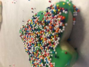 Today I deliver cookies to students and then professors and staff in the English department. You know I’m not crafty or excellent with icing. You know the cookies had icing dripping in hardened form down their sides with sprinkles haphazardly applied. You also can surely imagine the packaging: gold cellophane tied with twine.