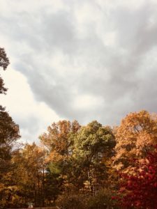 Today I rejoice in the view from the kitchen window as the stormy sky shines a bit of light on the transformed leaves. I’m arranging ingredients for dinner. I’m always here, at the back of the house, looking out.