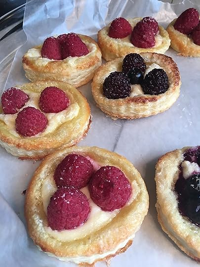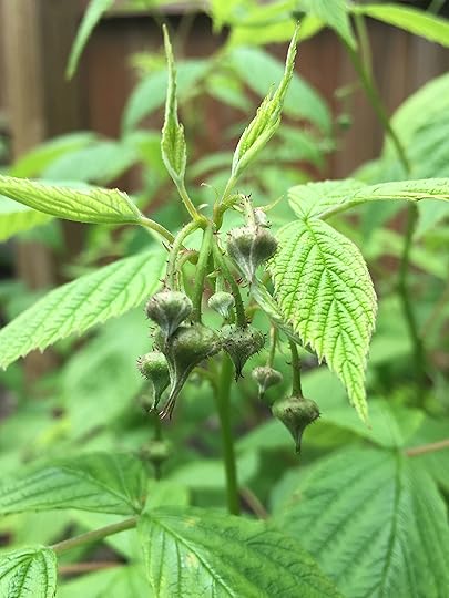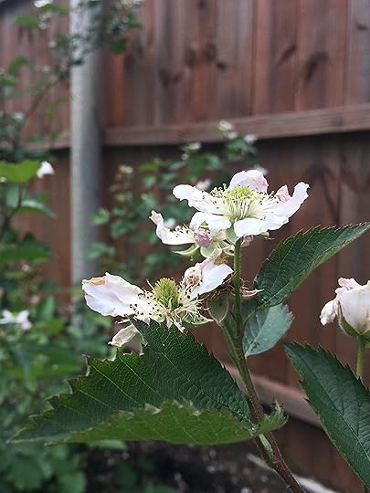 Look at these! I roam the garden, so filled with joy over what’s coming. Climbing roses in a peachy blush. Raspberries so abundant that I’ll make as much sorbet as we want. Blackberries as big as a thumb. Strawberries, bright red and perfect for pies.