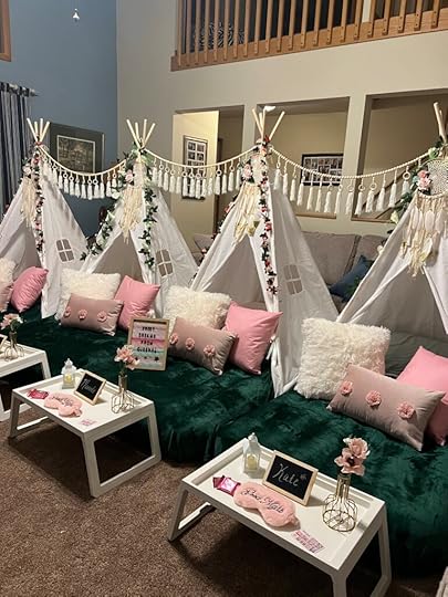 Claudia said, “Well, my family is in town to help me, so we’re giving you your sleepover party tonight!” Within just a few hours, Claudia tumbled into my house and set up the greatest, coziest, prettiest after-prom party. The girls returned from prom to step into a surprise of gifts and personalized sleeping areas. They all had the best time at prom and the best time at our after-party. And Claudia returned to pack everything up. I just love this business idea. I just love how special it makes guests feel.