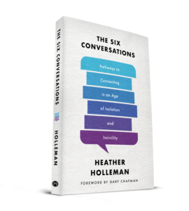 I’m starting all the fun promotion for my new book called The Six Conversations: Pathways to Connecting in an Age of Isolation and Incivility that comes out in October. Here is my first radio interview with a great host from My Faith Radio. It’s on Afternoons with Bill Arnold, and it’s about a 45 minute interview: https://myfaithradio.com/program_podcast/power-sharing-story-right-time-dr-heather-holleman/