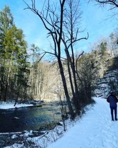 And it’s not only a season for being outside. Being inside in wintertime means the coziness of hot chocolate with plenty of whipped cream, the warmth of a kitchen with soup on the stove, and the sanctuary feeling of a home with candles to light, books to read, and blankets to arrange with room for cats to join you. It’s a slower, contemplative time. One day, I might have a fireplace! Until then, I can watch the snowfall as the sun sets in the forest.