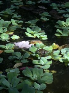 As I’m walking around the beautiful Fox Hill Gardens to find fall mums, I stop by a little pond. I lean down because in my hopes and dreams of childhood, I always searched for frogs who might just sit on lily pads. It’s something from stories and paintings and imagination. It’s something you hope you’ll see but rarely do.