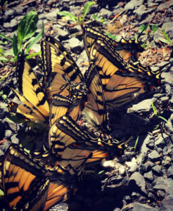 Today I learn that when butterflies gather together in a pile on the ground like this, it’s called “puddling.” It’s a puddle of butterflies! I love it. They do this because they have found a mineral rich area. They sit to absorb the salt and other nutrients they need. I love learning new verbs!