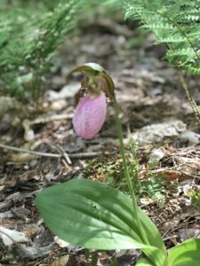 For the past ten years, I’ve learned to look carefully–right during this very week in May–for the secret lady slipper orchids. They bloom deep in the forest, but you have to look. You have to seek them like rare, hidden treasures. You’ll miss them if you walk by too quickly. It’s odd that they blend in even while boasting a pink, delicate slipper of a bloom.