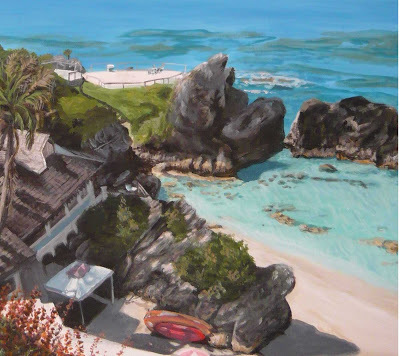 The view from The Reefs in Southampton is amazing!Painting by Sara M. BartonIt's never easy to put one's own career and personal life on hold, to do right by someone who's experiencing a health crisis. Like Miz Scarlet, I am a family caregiver when necessary (I also blog about cancer and caregiving as The Practical Caregiver). Between medical appointments, physical therapy sessions, and cooking comfort food, I had little time to focus on the final touches of my new book. But now, as life gets back to a more even keel, I'm able to devote myself more to what I love to do -- tell a fun tale.