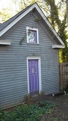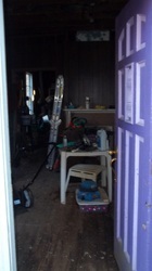 So we didn't go in the cottage. The cottage does creep me out a bit, but not so much from ghosts as from the dirt, clutter, and dire need of rehabbing. The interior is more or less in its original state, although someone in the past must have decided to start restoring it and pulled most of the plaster from the walls and ceiling leaving bare lathing exposed. And then they stopped. The floors are the original unfinished wood floors. The fireplaces are the original coal-burning fireplaces. The roof has been replaced due to a tree falling on the cottage twenty years ago and we had the exterior painted when we bought the property. Someone added electricity in the past. We also replaced a broken window in the back room with a door.