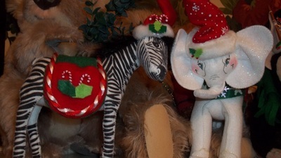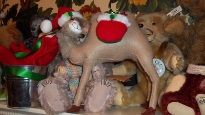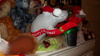 I'm sure a psychiatrist could tell me why I have this need to collect and surround myself with animals both alive and artistic representations. Not only do I collect the holiday Annalee animals, but there are the antique Steiff that have recently taken over the house. And the master bedroom is decorated with a cat theme. The downstairs is decorated in a bear theme. The kitchen used to be pig themed. And then we have the "Cat Room" upstairs that is just for the cats--no dogs allowed.