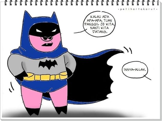 * Sekali lagi, Bobby berlagak gila dengan aku. Dia kata, telinga dia sama macam telinga Batman. Pleeeeeeeeease la weiiiii………….