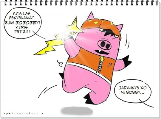 * Bobby berlagak gila dengan aku. Dia kata jambul dia sama macam BoBoiBoy. Cit, porrrrahhh!!!