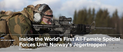 ELVERUM, Norway — An explosion just a few feet away rocks the unmarked station wagon as it travels along a dirt road in the Norwegian woodland. Immediately, two soldiers jump from their front seats and run for cover behind the carcass of an old, rusty tank. Firing their weapons at targets along the snow-covered hillside, they call for support from the rest of their unit. This firefight is just a drill, but the soldiers taking part are battling to break down one of the final barriers to women serving in the armed forces. They are training to become part of Norway's Jegertroppen or "Hunter Troops" — the world's first all-female military special forces unit.Read the full article here: http://ow.ly/ybPm30aV5t5
