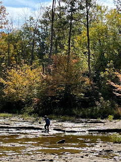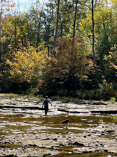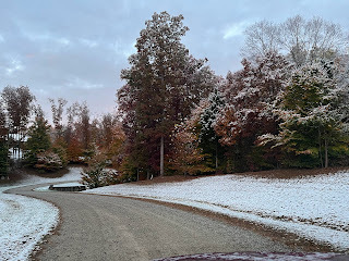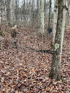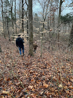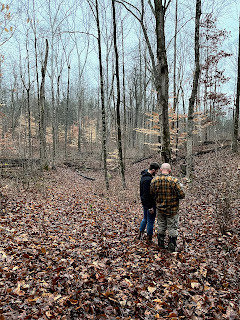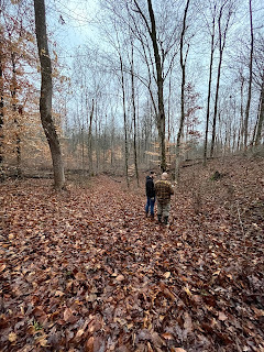We all three went for a walk in the woods the other evening with a map to help us find the property line. Now that the leaves have all fallen, it's a lot easier to see the land. I needed that walk, right along the neighbor's property line, seeing all the trails on his side--the potential of what our own side can look like some day. Trails on our own land, places where grandkids can come explore some day, nieces and nephews can come hang out, friends can come visit with their families, places we can go for nature walks, etc. I may not have a place to invite them to come right now, but eventually I will, and it will be worth the wait. Worth trekking through the mud for the time being.