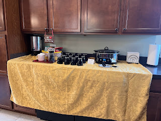We actually made quite a few more changes and enhancements since we took those pictures, including Julie's amazing talent at setting up the hot chocolate/cider bar. (She grew up with four sisters, so she's had a lot of experience decorating for bridal showers, etc.). After not having students on campus the last nine weeks and still experiencing yet another delay, this retreat gave us a new motivation, and we're super excited about it. Please be in prayer for these moms to truly feel renewed spiritually, mentally, and even physically today (that is, until they realize how much walking they'll need to do for the prayer walk all over the campus!)