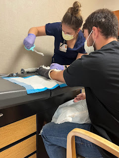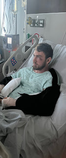 As David was in surgery, Juan and my two friends kept texting me saying how much care he was going to need to take care of all of his basic needs. I knew I needed to get to Dallas as soon as possible. So Mike booked me a ticket to leave first thing the next morning, and I arranged for Juan to pick me up. Juan also ended up staying the night with David in the hospital to help him out. My friend who stayed through the surgery and recovery time that night showed back up at 8:00 the next morning to be there with David while Juan left to pick me up, and then she filled me in on everything she learned from the doctors the night before. After she left, David had two more friends come to visit, along with his grandparents, aunt, uncle (who's had his own share of biking accidents and injuries), and cousins. Shortly after they all left, they discharged David to leave with the support of family rather than send him to rehab for a few days.