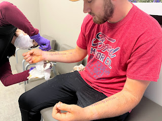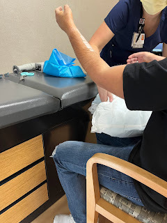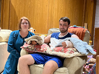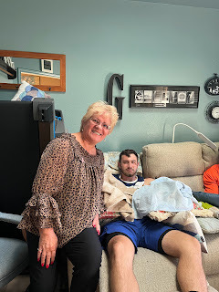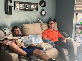 So, while we figure out how to keep the pain managed and keep him comfortable, and communicate back and forth with DBU to find out how to not lose all the work he already put into this semester, we're staying put for a couple weeks to see how this is all going to play out. God's definitely not surprised and knew this was coming, and we can already see how he prepared ways to provide for us way ahead of time. Including the fact that He hasn't provided the houseparents at New Song that we prayed so specifically for them to come before October 17th. Between sickness hitting the campus that week and then this with David, now we can see why God didn't think it was time for our students to come on campus yet. I'm so thankful for the flexibility right now to be able to care for my son and not have to hire someone else to do what a Mom can do better. My days now are spent caring for his every need, including bathing, feeding, medicating, brushing his hair and teeth, scratching his itches, and even giving him shots. I rotate ice packs, situate pillows, answer his texts, e-mails, and phone calls, and just hang out 24/7 with my son, who has been an amazing trooper through all of this so far. It's giving us a lot of time to just talk, and for that, I'm thankful because I sure have missed him. I'm tired, but I wouldn't trade this time and this blessing to be able to be there for him.