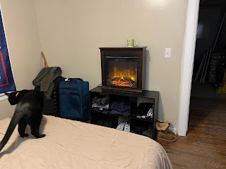 Since that short hospital stay, I've woken up on the floor in my son's bedroom in Garland, TX the morning of the day we finally moved out of the house, in a hotel room in Hope, Arkansas the next morning (with two terrified little cats), on a cot in my brother-in-law's basement in Columbus, Indiana (with my mother-in-law on a cot beside me), in a camper sitting outside his house the following morning, in the same camper sitting on New Song's campus in Freeport, IN for the next few weeks until the AC broke, in a large room/suite at the main campus house at New Song (right above my new classroom) for the next month or so, back in the camper again in Columbus, IN on a large piece of wooded property sitting behind an old house that needed extensive work inside with a large campfire to the side burning brush and trash non-stop for weeks, then in the living room inside that old house (because of below freezing temps outside) without a working kitchen or furnace, but with two fireplace heaters keeping it nice and cozy inside, and suddenly in a spare bedroom at my friend's house back in Texas for the last week and two more ahead, while taking care of my very independent son's every need as he spends most of his time in a bedroom down the hall here at my friend's house.
