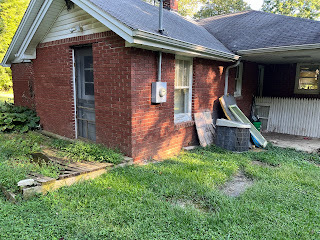 However, despite my own mental/emotional struggle over the last 3 weeks, Mike, Matt, and Mark (Matt's father-in-law) made some HUGE progress on the house that I must congratulate them on. When we first looked at this house with a sunken room due to a basement wall caving in, I thought only crazy people would ever consider buying such a house. Honestly, to me, it sounded like a situation you'd want to run far away from if you had any economic sense. But to watch those three men go down in the basement to assess the damage and come back up saying, confidently, "We can fix that." Well, I didn't know what to even think of that.