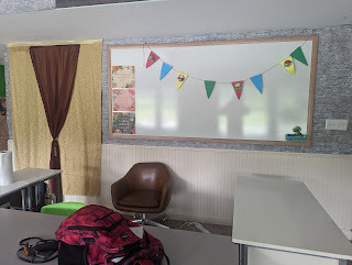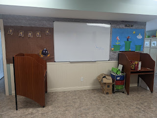 Then I spent the rest of the day taking down all the old decorations (Super Mario) so that when my new teaching partner starts next week, we can come up with ideas together on how to redecorate. Personally, I'm leaning toward finding a lot of posters that teach/remind the kids about good leadership traits since the school is transitioning to it's new name, New Song Leadership Academy. But my new partner, Julie, may have some great (or better) ideas. I am really looking forward to working with her.