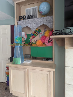 So this morning, I slept in till Mike left, showered, did some more organizing in the camper, took care of a leak that I found from the rain (our own fault), read some, worked on an online Bible study, had my prayer time, made some lunch, and then drove the rest of the way down New Song Road to get into my classroom. Sure is nice to have wifi again and to not have to wait long for my pictures to download! I took some pics of the classroom so I can start envisioning ways I might want to decorate or set things up. I've never taught in this style before, so I'm just trying to take it all in for now. Lisa told me to be thinking about what I want to do and that there will be a budget to cover that. Now that's a first!