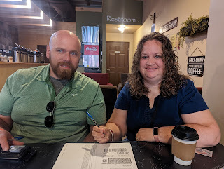 Yesterday I helped with camp, made some new little friends, we opened a bank account with the option period money we got out of the first contract on our house that didn't go through, I found a new place to get my hair cut, and I drove around town a little to get more comfortable and find the best routes to one of the cutest coffee shops I've ever been to.