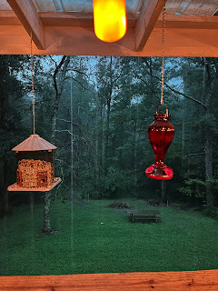 Last night when Mike went to take David back to Matt's house, I decided to stay back at the camper and just sit outside to read. It was still light out, and the temperature was very pleasing. I think it may have started to rain very softly while I sat outside, but I was under the awning, so it was like sitting outside on my covered front porch.