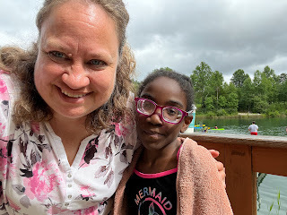Monday I popped in to meet the incoming campers around three in the afternoon, hung around for a couple get-to-know-you games, and then walked back to the camper to relax with Mike for the evening. I also met my new little friend, Abi, the granddaughter of the girls' houseparents. I had given her grandma a copy of my first book just a day or two before that because she said she really wanted to read it and know our story (didn't know they had a similar story of their own!), and little Abi saw it and read through it first! So when I met her, she felt like she already knew me, and she just kept saying how much she loved my book. We found her a copy of the second book, and she's already devouring that one, too. Love her. :)