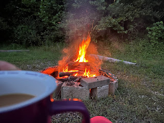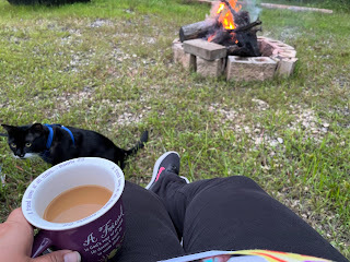 And once it got going, we both had a chance to just sit in the stillness and tranquility, stare at the flames, talk about life, and just "be" together. For as long as we're here in the RV until we move into a house, I look forward to the evenings we can just sit in front of the fire. Almost a forced rest, a given permission to be still. A great way to have a chance to connect.