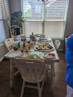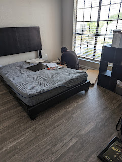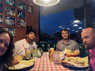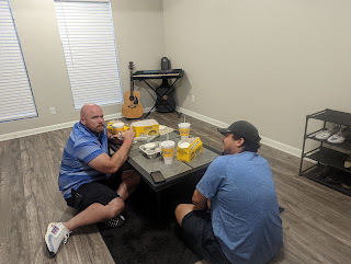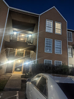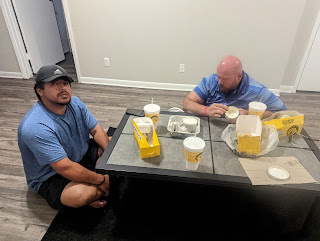 Tonight I will attend my friend's husbands viewing, and tomorrow morning we'll go to his funeral. Depending on whether the moving truck is packed and how the funeral goes, we may be heading out of town right after that. David went to a young adult meeting at a church he goes to with his college buddies in Dallas last night (called The Porch), so I reached out to Juan David to see about meeting Mike and me for dinner one last time. Between his weird schedule and ours, we ended up getting dinner and taking it to his apartment around 8:00 last night. He was pretty proud to show us all he'd done in decorating with the few pieces of furniture he has so far and to show us his plans for how he plans to continue setting it up. He spoke so much more maturely, in my opinion, as he is beginning to realize all the new responsibilities he's stepped into.
