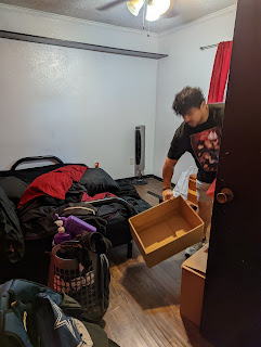 I will admit, we were quite surprised to see how much he was NOT packed or ready, despite how much he said he was and how much he insisted it wouldn't take long at all to move his stuff. I think it took more work to empty his small, unpacked bedroom than it did to get it all up the three flights of stairs (which I sadly walked up about three times before I decided to stay at the top and put away a few things in his kitchen while Juan and David finished bringing it all up).