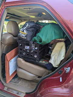 We hoped to leave Thursday afternoon, then switched to Friday morning, then to Friday afternoon, and finally by 8:00 on Friday night, we had the house empty and clean, the moving truck packed completely full, two SUV's packed full, a trailer loaded behind one SUV for David to pull, and another trailer loaded behind the moving truck to haul Mike's prized rock-crawler. With a caged cat in two vehicles, we each got into a vehicle to begin the long drive North, assuming we'd make it at least a few hours that first night to shorten up the trip some on Saturday.