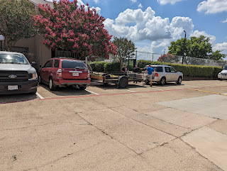 We're so thankful for so many prayers for safety, because God definitely kept us safe, though the trip was anything but uneventful. That Friday night, I started getting tired around 11:30 and told Mike I could make it till midnight. That would get us to Texarkana, one of the bigger towns. Except once we got to Texarkana around midnight, we couldn't find any motels with any vacancies. So we drove a bit farther while Mike called 14 different motels on our way, only to find out everyone was booked due to an athletic tournament going on. I finally resorted to a being open to a Walmart parking lot where I could at least sleep a few hours in my car. Just when we decided on that over the phone, we heard a popping sound, which happened to be Mike's trailer tire. So he slowly pulled off the road and onto the next exit, right into a Walmart parking lot. When we all got our of our vehicles to look at the tire, we looked up and saw a motel right across the street. With a vacancy! We all got a good night's sleep for the long drive on Saturday, and we got the tire we needed at Walmart in the morning. God took good care of us that night, in Hope, Arkansas, of all places.