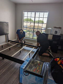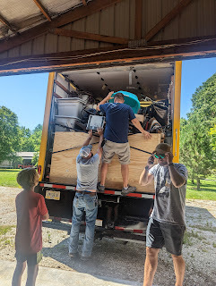 We were supposed to close on our house on the 5th and leave a day or two later. But at the last minute, the buyers extended their option period while they drew up a "new" offer that reflected their concerns about their true budget after they had an inspection completed. Their new offer was so far from their original offer that we had to respectfully decline and terminate the contract. We definitely saw a case of an investor trying to take advantage of us. So, we scheduled a time to get the moving truck, and Mike and David started packing the truck immediately.