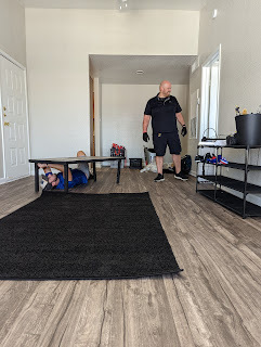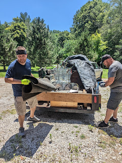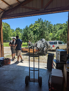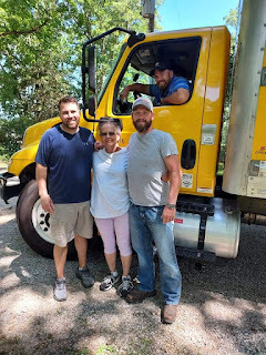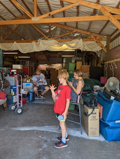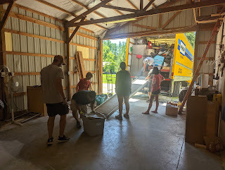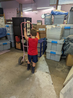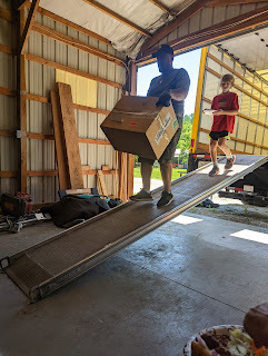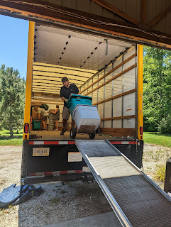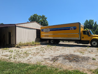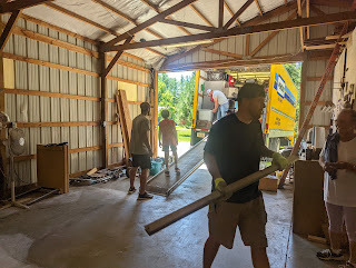 Mike, David, Matt, and Mark all ended up hanging out in the Man Cave (a cool room above the garage) until about 5:30 in the morning, but Peggy (my mother-in-law) and I slept on camping cots in the basement and fell fast asleep as soon as we turned the lights out, probably around 3:30 in the morning. My nephews and Chrissy had all gone to bed much earlier, so we could hear them upstairs by around 7:30 or 8:00 the next morning. By 8:30, we started to get up and around, and before lunch time, we had all headed out with the moving truck to unload the contents of our house, garage, and driveway into an empty barn/garage at Chrissy's mom's house, about 15 minutes away.