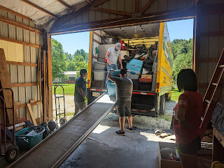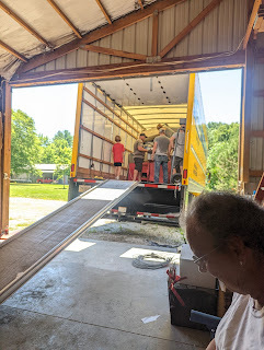 What took Mike and David almost three solid days to load took four Alspaugh men (and women) just a couple hours to unload. We kept it somewhat sorted in the barn so that we can get things as needed, or at least we tried. Haha.