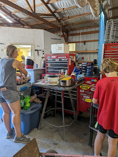 Chrissy's mom also came out and fed us a really good lunch of hamburgers, chips, salad, baked beans, corn on the cob, and really good iced tea. I felt so blessed, to have this convenient, spacious place to store our things until we find the right home here to meet our needs, but also to be so warmly welcomed and received.