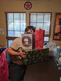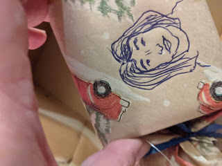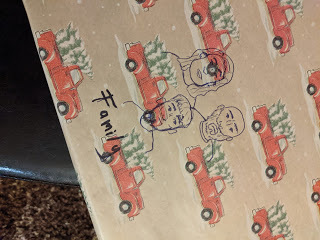 Juan's creative way of labeling his gifts for the family this year. Rather than writing names, he drew pictures of us. Leave it to my artsy child.