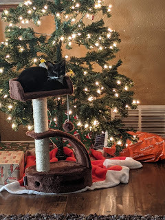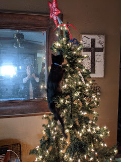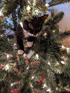 A kitten and a Christmas tree. What fun that has been to watch this year!